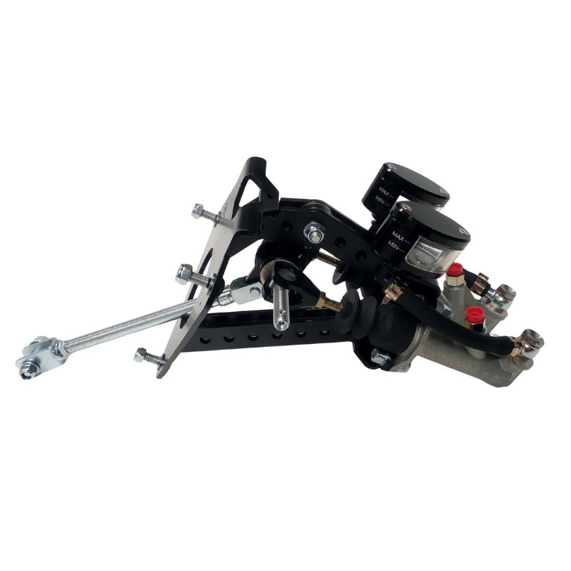 Permite instalar un sistema de doble bomba hidráulica, con circuitos de freno completamente independientes para el eje delantero y trasero. El reparto de frenada entre ambos ejes puede ajustarse mediante el repartidor, lo que lo convierte en una solución ideal para uso en circuito y drift.